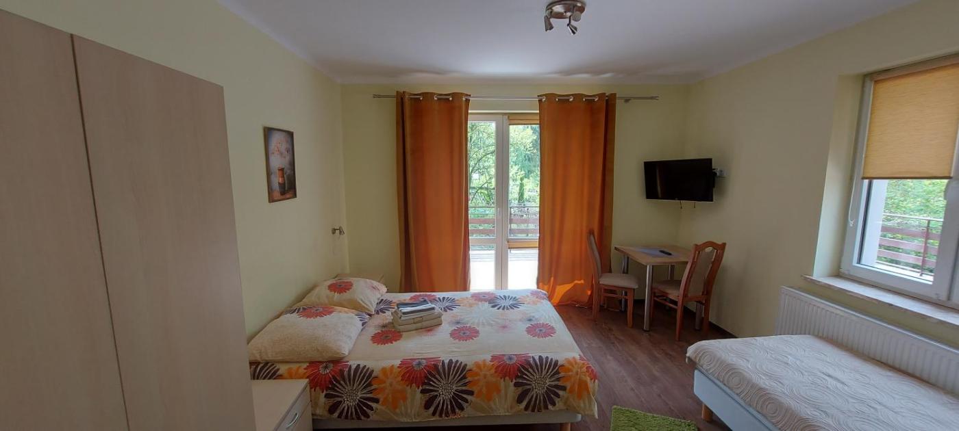 Pokój Trzyosobowy z prywatną łazienką poza pokojem. Guests will find a refrigerator, a dishwasher, kitchenware and an oven in the kitchen. The triple room also includes a barbecue. The triple room features air conditioning, a washing machine, a terrace with garden views as well as a private bathroom boasting a shower. The unit has 2 beds. Pokój Trzyosobowy - 3 osobowy. Powierzchnia pokoju ok.: 20 mkw. ;