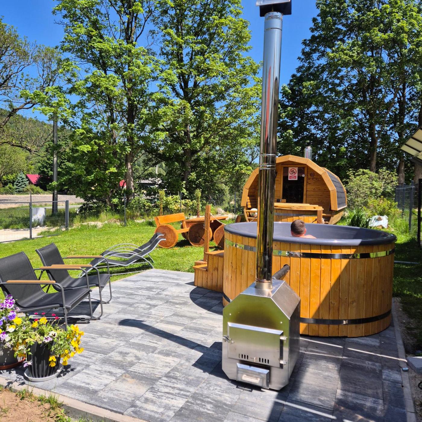 Domek z 2 sypialniami. Guests will find a stovetop, a refrigerator, a dishwasher and kitchenware in the well-equipped kitchenette. The chalet also comes with a barbecue. Boasting a terrace with garden views, this chalet also features a private entrance and a flat-screen TV. The unit has 5 beds. Domek - 8 osobowy. Powierzchnia pokoju ok.: 35 mkw.