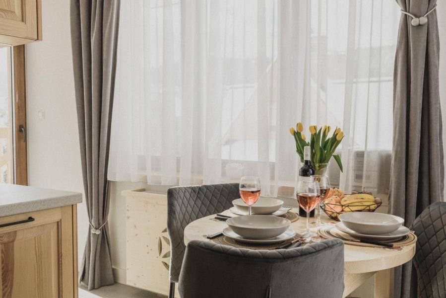 W apartamencie zapewniono sypialnię (1), łazienkę (1), pościel, ręczniki, jadalnię oraz aneks kuchenny z pełnym wyposażeniem. Do dyspozycji Gości jest także telewizor z płaskim ekranem oraz taras z widokiem na miasto.